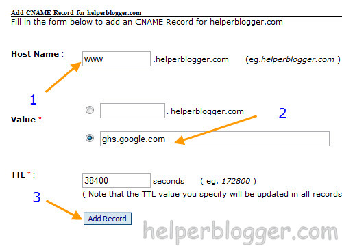 A ) Host Field - Fill ( www ) in host field. (See Image Below)